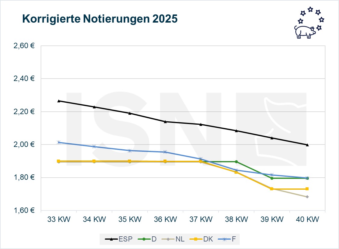 Der europäische Schlachtschweinemarkt zeigt in der laufenden Schlachtwoche eine uneinheitliche Entwicklung. Während sich die Notierungen in mehreren EU-Ländern auf dem abgesenkten Niveau gefangen haben, geben die Schweinepreise in Spanien, Frankreich und den Niederlanden weiter nach.