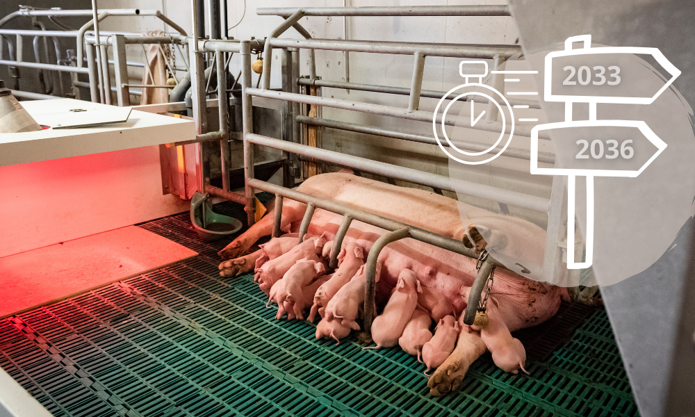Die neuen Anforderungen für den Abferkelbereich müssen bis spätestens 9. Februar 2036 umgesetzt werden. Bereits drei Jahre vorher, bis zum 09. Februar 2033 muss ein entsprechendes Betriebs- bzw. Umbaukonzept sowie ein Bauantrag bei der zuständigen Behörde eingereicht werden.