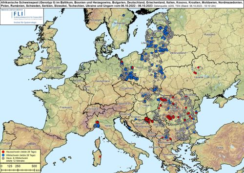 In Polen lässt der Infektionsdruck nicht nach. Dort hat sich das ASP-Geschehen in diesem Jahr weiter verschärft. Seit Jahresbeginn wurden in Polen innerhalb der EU die meisten ASP-Fälle verzeichnet – Hier liegt die Anzahl der ASP-Funde bei Wildschweinen bei einem Rekordwert von 2.231. Außerdem ist das Virus 2023 dort insgesamt schon in 27 Hausschweinebeständen festgestellt worden.