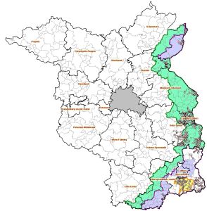 Gesamtübersicht der Sperrzonen I und II einschließlich des Kerngebietes 6 und der Weißen Zonen sowie alle ASP-Ausbrüche seit 10.09.2020 im Land Brandenburg ©MSGIV
