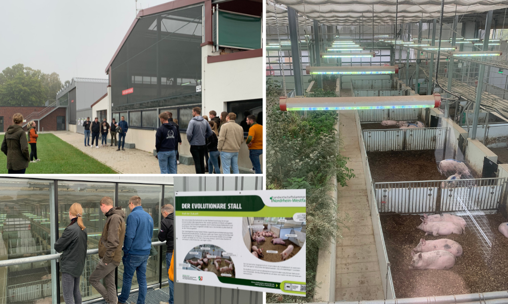. Hierbei handelt es sich um ein innovatives Forschungsprojekt des Landwirtschaftsministerium NRW. Im Rahmen der Nutztierstrategie wurden hierbei zwei Ausbildungs- und Demonstrationsställe errichtet – insbesondere mit dem Fokus auf Tierwohl, Umwelt und Verbraucherakzeptanz, um neue Wege in der Schweinemast aufzuzeigen. Die Teilnehmenden hatten vor Ort die Möglichkeit, sich die zwei modernen Mastställe in den Haltungsformstufen 3 und 4 detailliert anzuschauen.