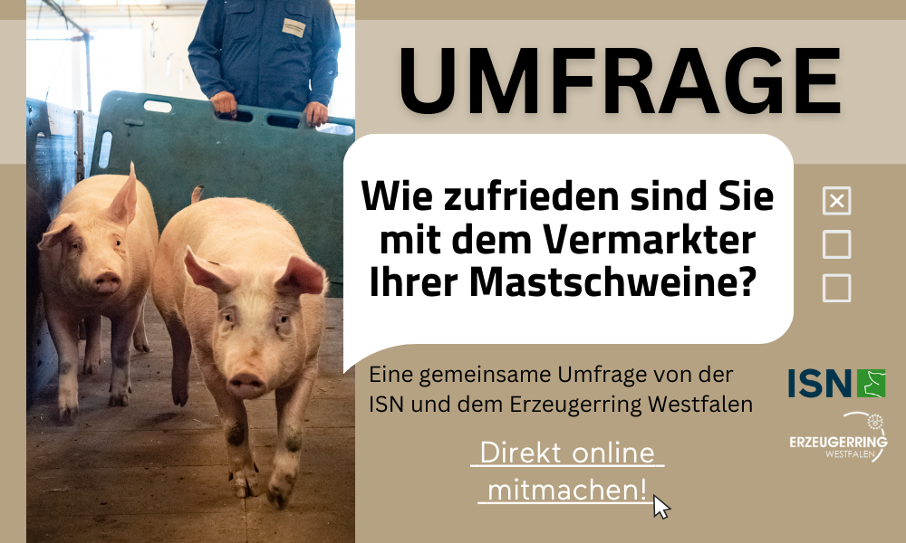 In einer gemeinsamen Umfrage von ISN und Erzeugerring Westfalen möchten wir von Ihnen wissen, was gut oder auch weniger gut läuft. Wir möchten von Ihnen wissen, wo ggf. der Schuh bei der Schlachtschweinevermarktung drückt.